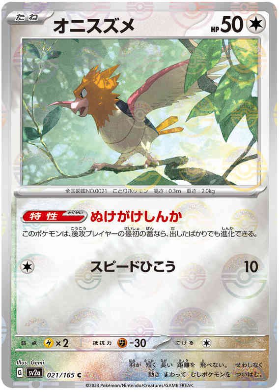 Pokemon Japanese sv2a 021/165 Spearow (Poke Ball) Reverse Holo